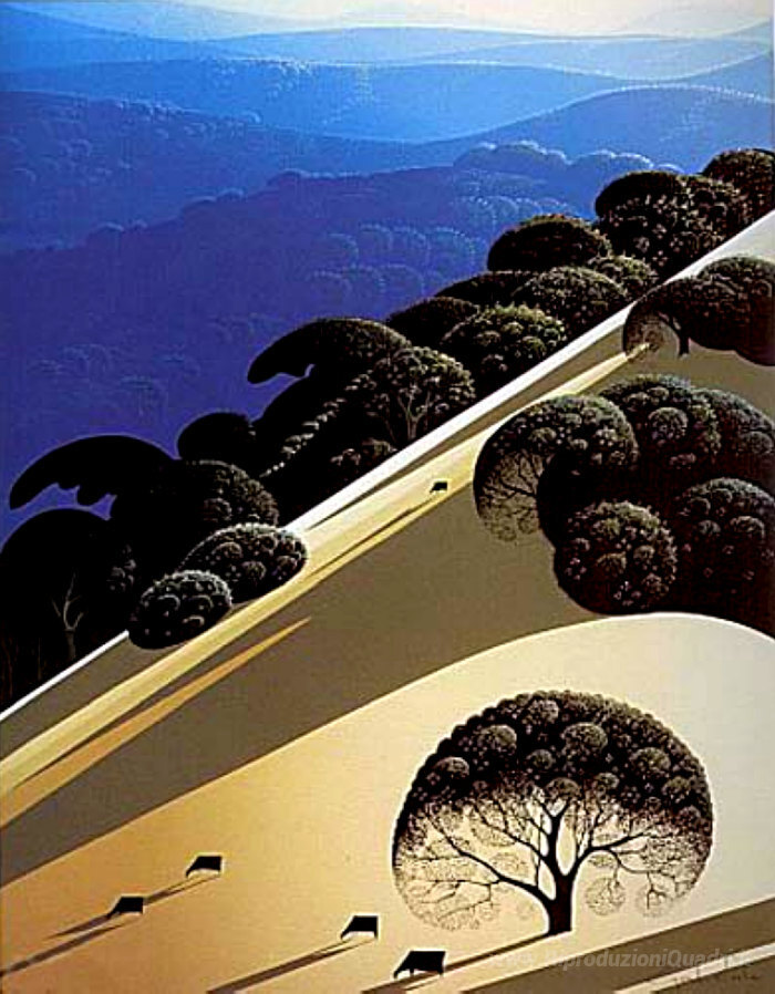 Ti offriamo una riproduzione artigianale su tela dell'opera famosa 'Estate' di Eyvind Earle, dal Museo delle Riproduzioni.