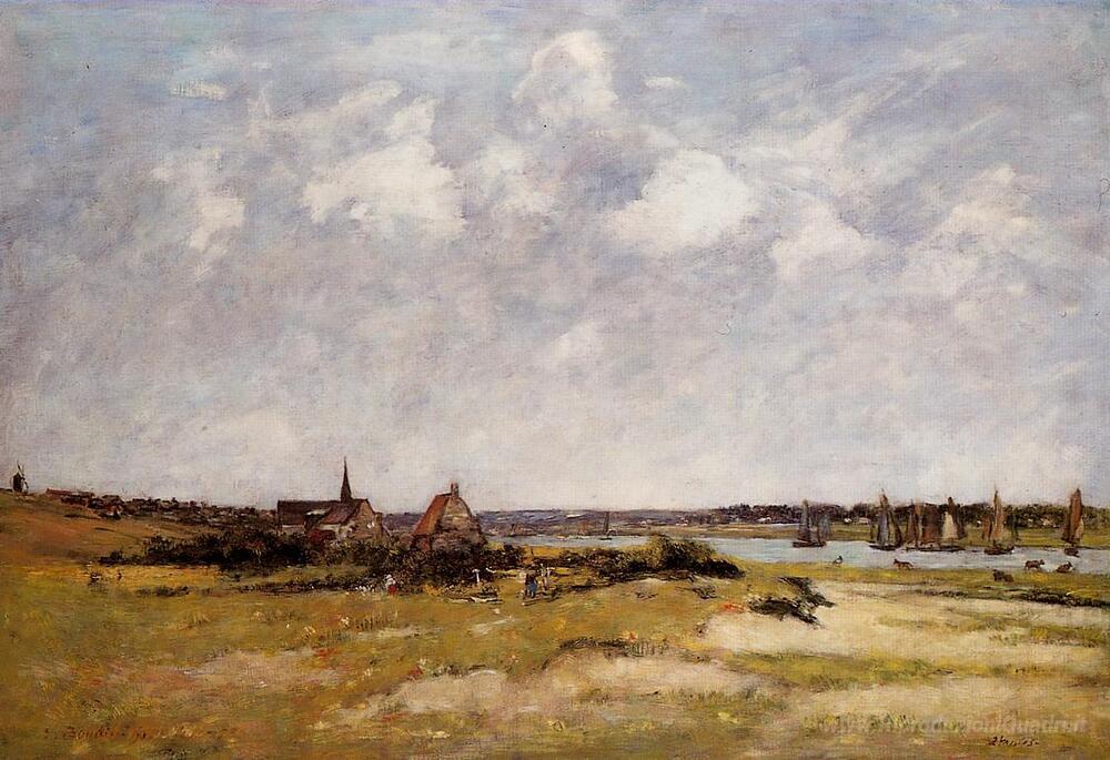 Ti offriamo una riproduzione artigianale su tela dell'opera famosa 'Etaples, La Canache, High Tide' di Eugene Boudin, dal Museo delle Riproduzioni.