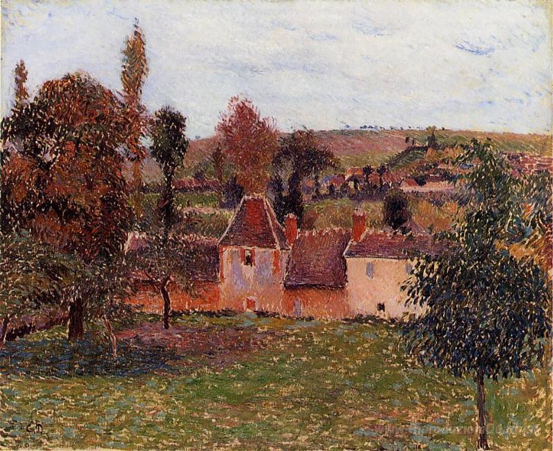 Ti offriamo una riproduzione artigianale su tela dell'opera famosa 'Farm a Basincourt' di Camille Pissarro, dal Museo delle Riproduzioni.
