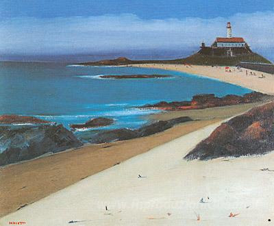 Ti offriamo una riproduzione artigianale su tela dell'opera famosa 'Farol da Barra' di Jose Pancetti, dal Museo delle Riproduzioni.