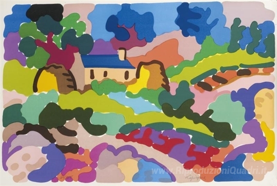 Ti offriamo una riproduzione artigianale su tela dell'opera famosa 'Ferme en Bretagne' di Charles Lapicque, dal Museo delle Riproduzioni.