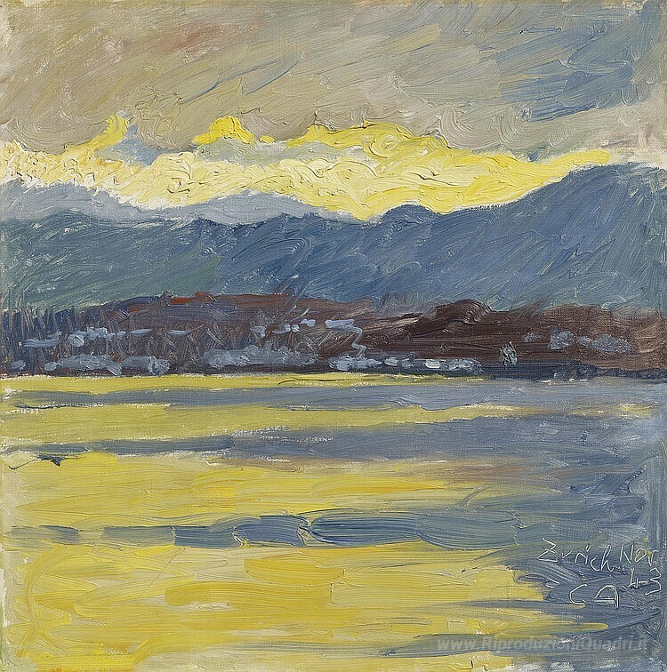 Ti offriamo una riproduzione artigianale su tela dell'opera famosa 'F?hnstimmung (Zürichsee)' di Cuno Amiet, dal Museo delle Riproduzioni.