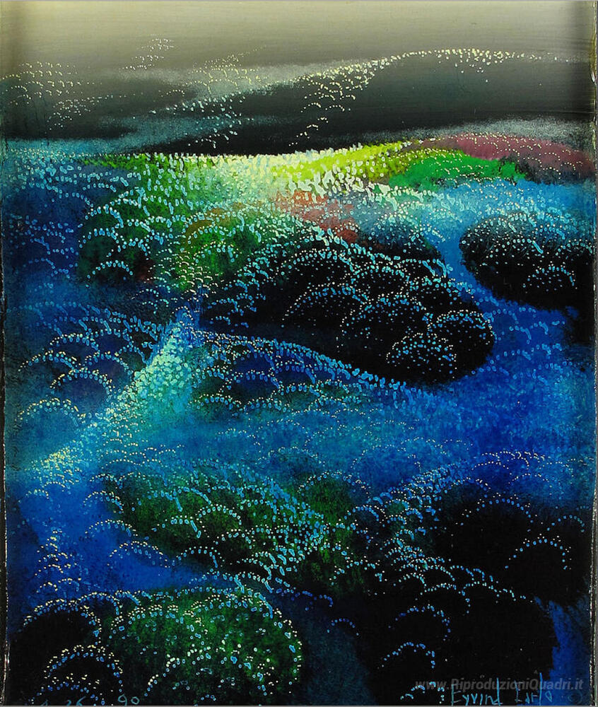 Ti offriamo una riproduzione artigianale su tela dell'opera famosa 'Fields Of Fog' di Eyvind Earle, dal Museo delle Riproduzioni.