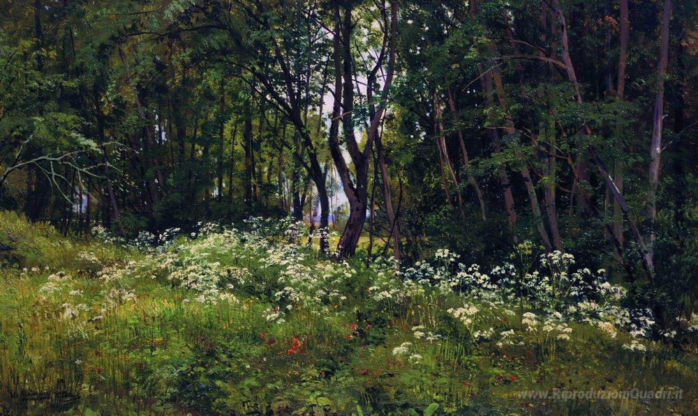 Scopri l'incanto dei Fiori sul bordo della foresta, un'opera straordinaria del maestro russo Ivan Shishkin, noto per la sua capacità di catturare la bellezza della natura con una precisione mozzafiato. Questo dipinto a olio svela un paesaggio ricco di dettagli, dove fiori vibranti si intrecciano con il suggestivo scenario forestale. Shishkin, celebre per il suo stile realista e l’uso sapiente della luce, invita l'osservatore a immergersi in un'atmosfera di serenità e armonia.