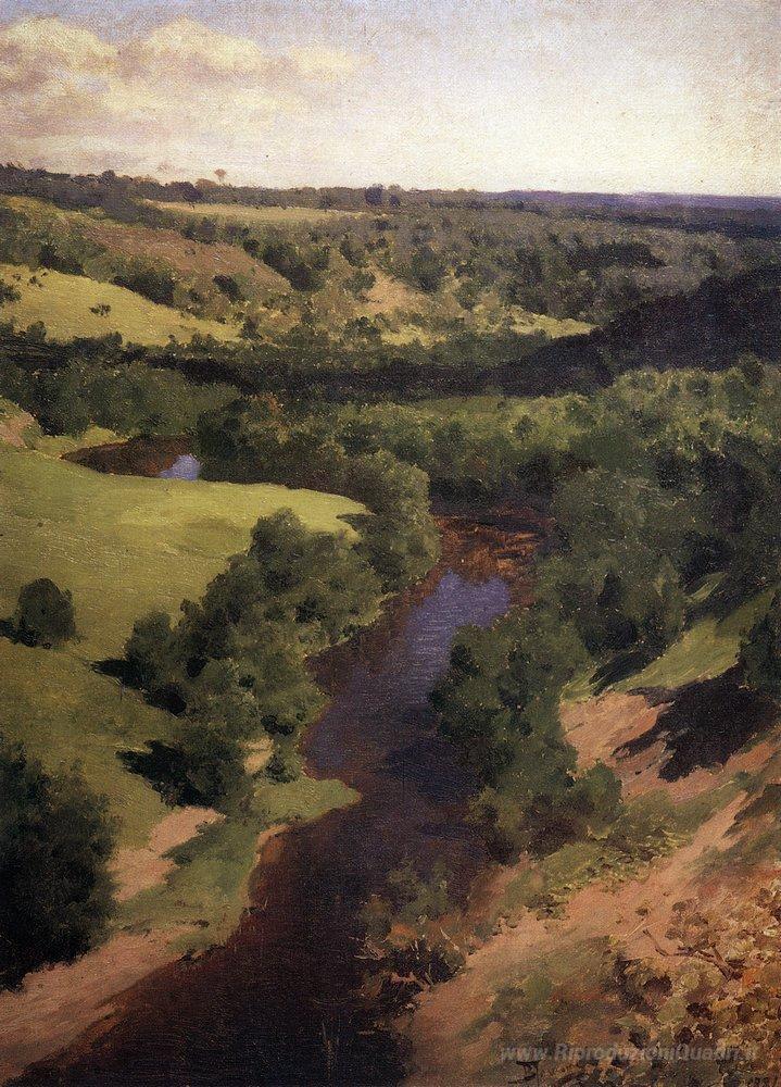 Ti offriamo una riproduzione artigianale su tela dell'opera famosa 'Fiume Voria' di Vasily Polenov, dal Museo delle Riproduzioni.