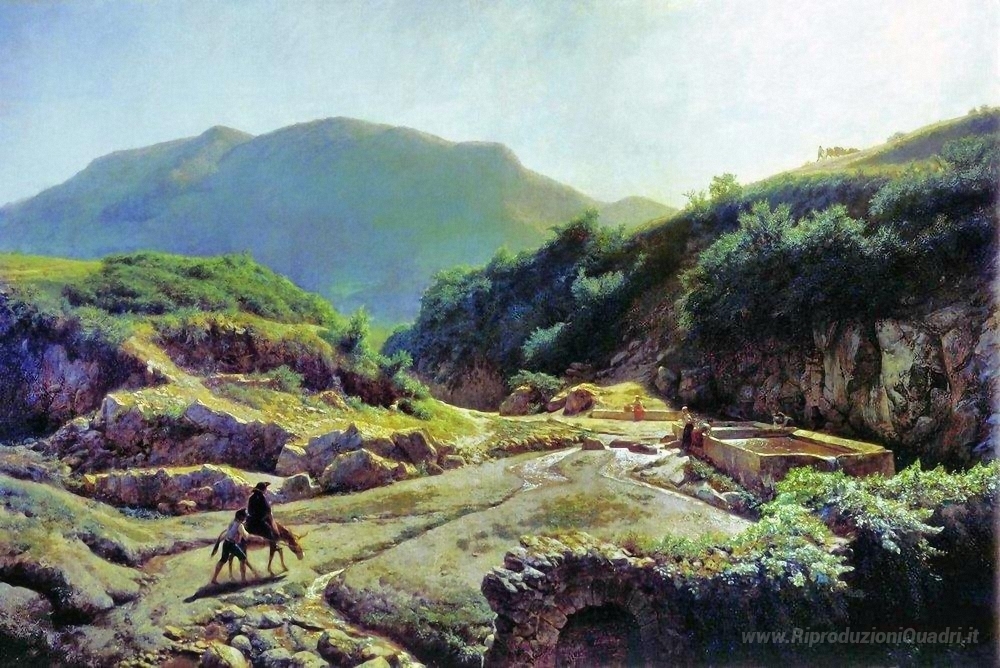 Ti offriamo una riproduzione artigianale su tela dell'opera famosa 'Fontana di Annibale a Rocca di Papa vicino a Roma' di Lev Lagorio, dal Museo delle Riproduzioni.