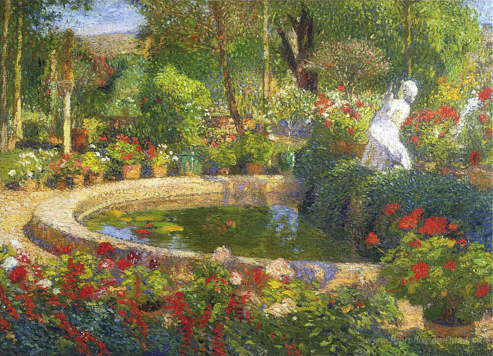 Ti offriamo una riproduzione artigianale su tela dell'opera famosa 'Fontana in Marquayrol' di Henri Martin, dal Museo delle Riproduzioni.