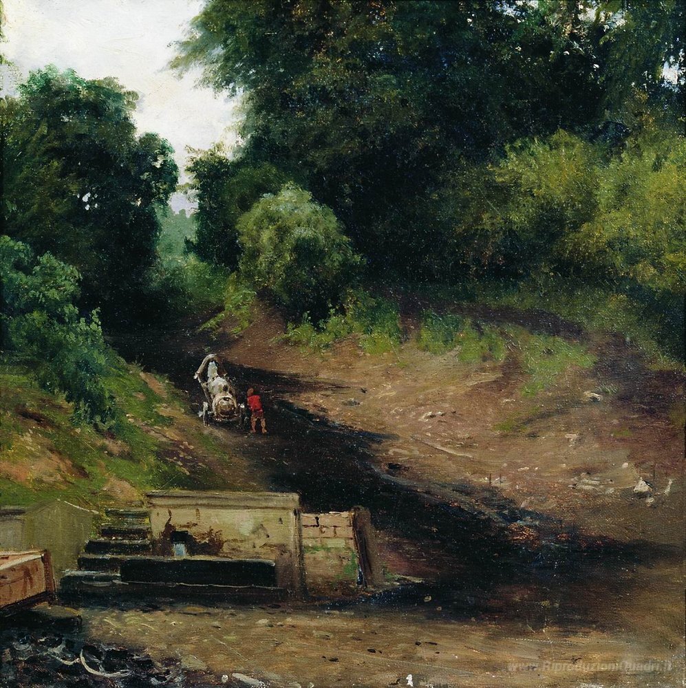 Ti offriamo una riproduzione artigianale su tela dell'opera famosa 'Fontana' di Grigoriy Myasoyedov, dal Museo delle Riproduzioni.