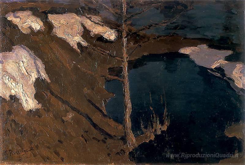Ti offriamo una riproduzione artigianale su tela dell'opera famosa 'Forest Creek' di Ferdynand Ruszczyc, dal Museo delle Riproduzioni.
