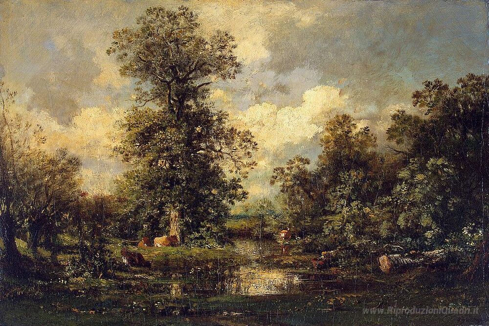 Benvenuti nel nostro esclusivo spazio dedicato ai dipinti a olio, dove la bellezza dell'arte italiana incontra la maestria degli artisti. Oggi vi presentiamo l’incantevole opera Forest Landscape di Jules Dupre, un capolavoro che cattura l'essenza della natura attraverso pennellate vigorose e un uso sapiente del colore. Dupre, maestro della scuola di Barbizon, è noto per la sua abilità nel ritrarre paesaggi vibranti, creando atmosfere evocative e suggestive.