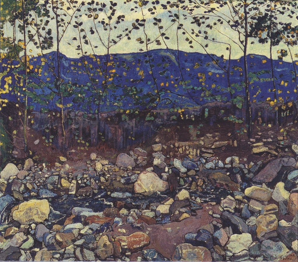 Ti offriamo una riproduzione artigianale su tela dell'opera famosa 'Foresta Brook a Leissingen' di Ferdinand Hodler, dal Museo delle Riproduzioni.