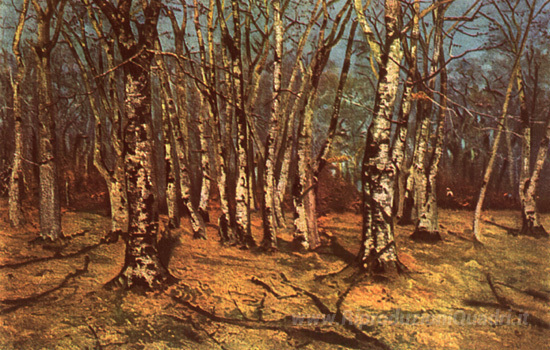 Ti offriamo una riproduzione artigianale su tela dell'opera famosa 'Foresta di faggi' di Ion Andreescu, dal Museo delle Riproduzioni.
