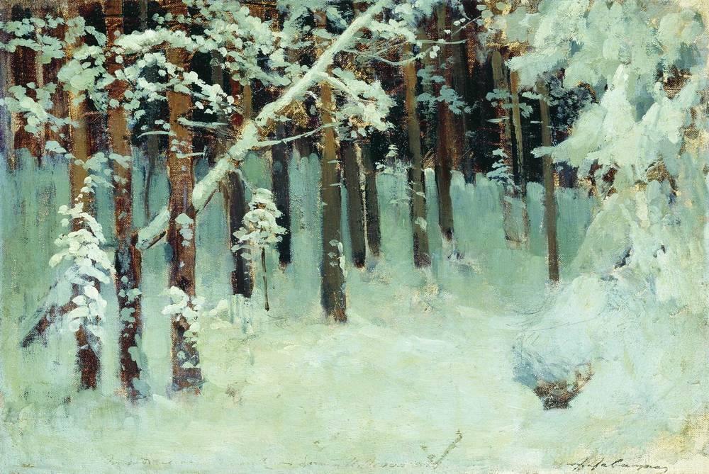 Ti offriamo una riproduzione artigianale su tela dell'opera famosa 'Foresta in inverno' di Isaac Levitan, dal Museo delle Riproduzioni.