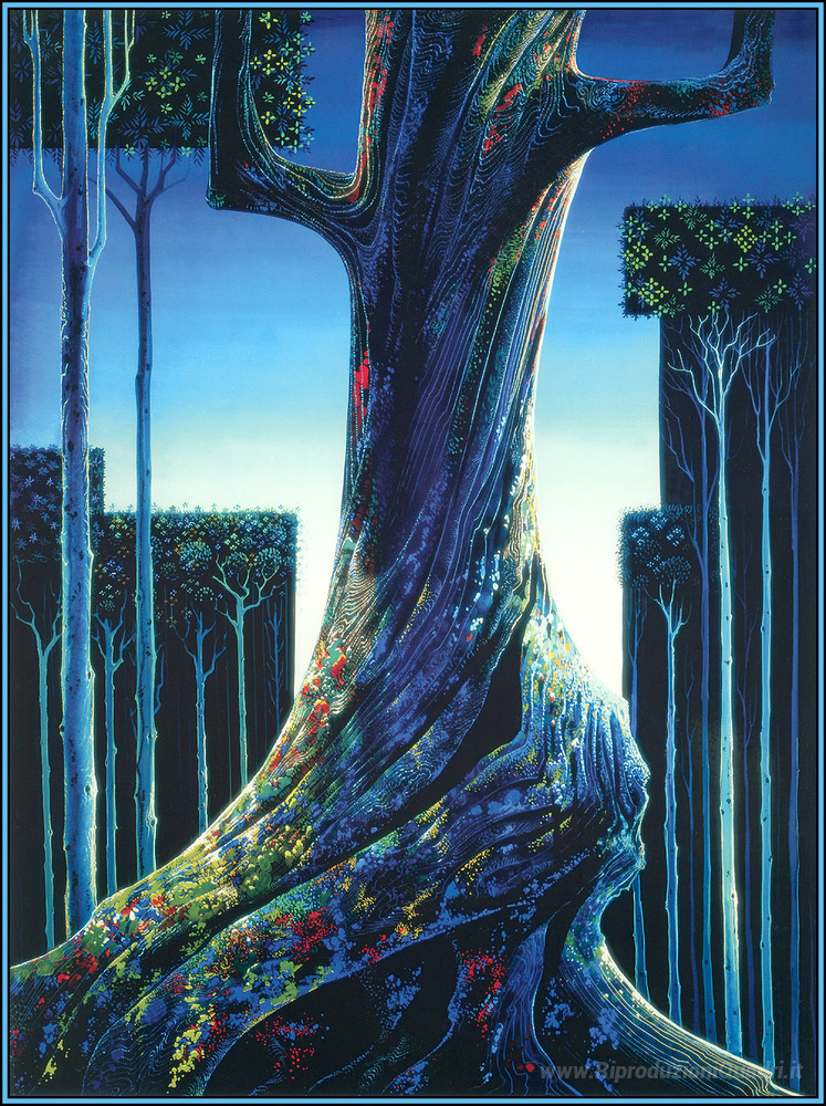 Ti offriamo una riproduzione artigianale su tela dell'opera famosa 'Foresta Medievale' di Eyvind Earle, dal Museo delle Riproduzioni.