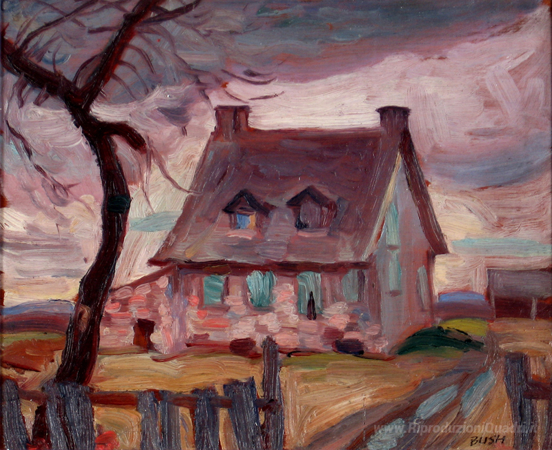 Ti offriamo una riproduzione artigianale su tela dell'opera famosa 'Francese Farm House, Montreal' di Jack Bush, dal Museo delle Riproduzioni.