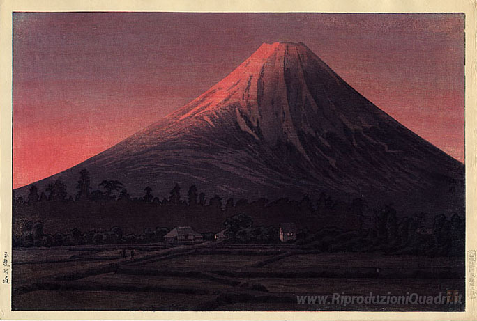 Ti offriamo una riproduzione artigianale su tela dell'opera famosa 'Fuji vicino Tamaho (variante rosa)' di Shotei Takahashi, dal Museo delle Riproduzioni.
