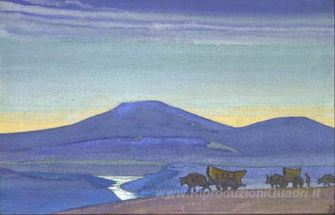 Ti offriamo una riproduzione artigianale su tela dell'opera famosa 'Gansu' di Nicholas Roerich, dal Museo delle Riproduzioni.