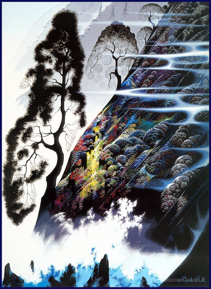 Benvenuti nel nostro esclusivo spazio dedicato ai dipinti a olio italiani, dove arte e passione si intrecciano per dar vita a opere uniche. Tra queste, "Gardiente Splendor" di Eyvind Earle, un maestro nell'arte di catturare la bellezza naturale attraverso una palette vibrante e dettagli squisiti. Earle, noto per il suo stile distintivo che fonde il surrealismo con gli elementi classici, conferisce a ogni suo lavoro una dimensione onirica.