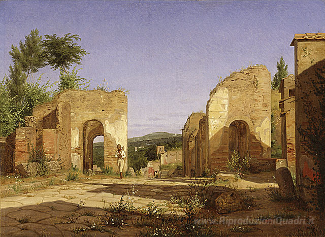 Ti offriamo una riproduzione artigianale su tela dell'opera famosa 'Gateway in via sepulcralis a Pompei' di Christen Kobke, dal Museo delle Riproduzioni.