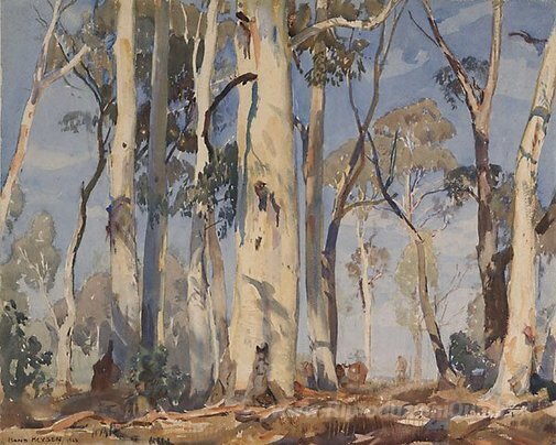Ti offriamo una riproduzione artigianale su tela dell'opera famosa 'Gengive alla luce del sole' di Hans Heysen, dal Museo delle Riproduzioni.