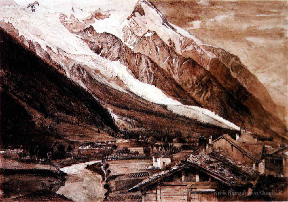 Ti offriamo una riproduzione artigianale su tela dell'opera famosa 'Ghiacciaio des Bossons Chamonix 1849' di John Ruskin, dal Museo delle Riproduzioni.