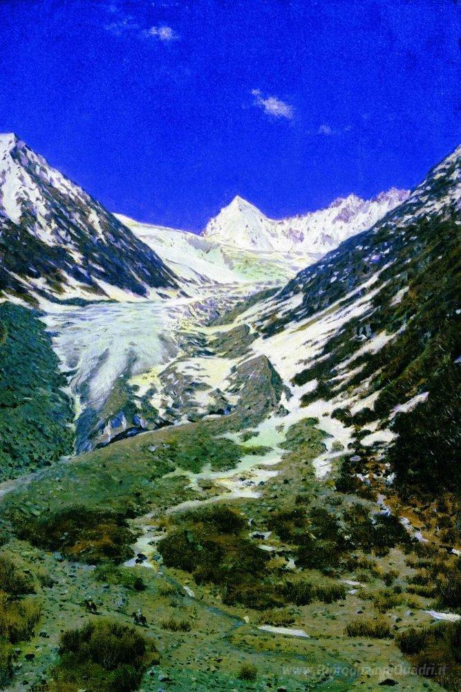 Scoprite la straordinaria bellezza del dipinto Ghiacciaio sulla strada dal Kashmir al Ladakh dell'artista Vasily Vereshchagin. Conoscitore finissimo della natura e delle sue sfumature, Vereshchagin cattura l'essenza del paesaggio montano attraverso una tecnica a olio che esalta ogni dettaglio. Le sue opere, caratterizzate da una luminosità avvolgente e una resa materica unica, trasportano l'osservatore in luoghi lontani, evocando emozioni viscerali e un profondo senso di meraviglia.