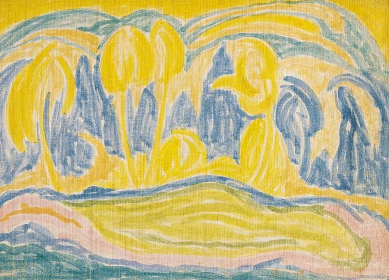Ti offriamo una riproduzione artigianale su tela dell'opera famosa 'Giallo-blu Paesaggio' di Janos Mattis-Teutsch, dal Museo delle Riproduzioni.