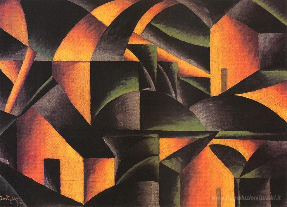 Ti offriamo una riproduzione artigianale su tela dell'opera famosa 'Giallo-Green Landscape' di Sandor Bortnyik, dal Museo delle Riproduzioni.