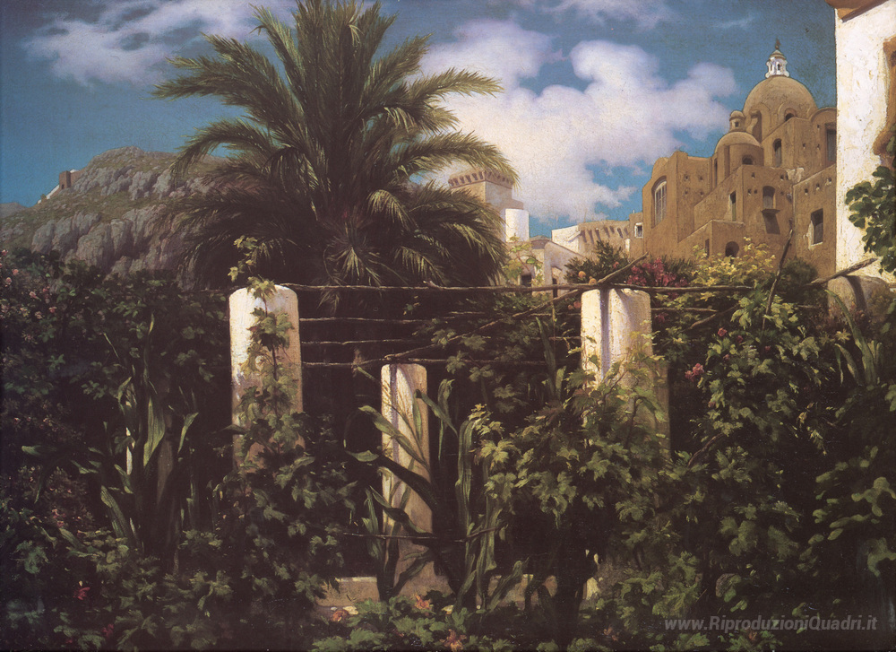 Ti offriamo una riproduzione artigianale su tela dell'opera famosa 'Giardino di una locanda Capri' di Frederic Leighton, dal Museo delle Riproduzioni.
