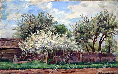 Ti offriamo una riproduzione artigianale su tela dell'opera famosa 'Giardino in fiore' di Pyotr Konchalovsky, dal Museo delle Riproduzioni.