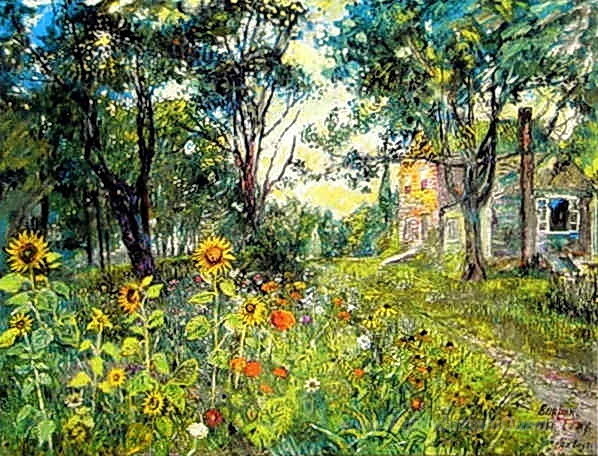 Ti offriamo una riproduzione artigianale su tela dell'opera famosa 'Girasoli' di David Burliuk, dal Museo delle Riproduzioni.