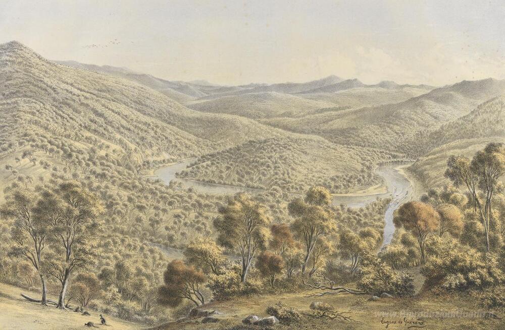 Ti offriamo una riproduzione artigianale su tela dell'opera famosa 'Giunzione del Buchan e Snowy Rivers, Gippsland' di Eugene von Guerard, dal Museo delle Riproduzioni.