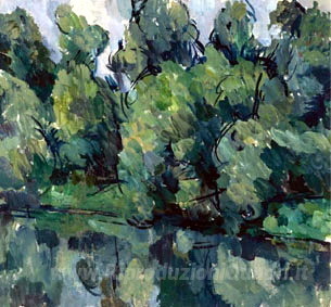 Ti offriamo una riproduzione artigianale su tela dell'opera famosa 'Gli alberi vicino al lago' di Pyotr Konchalovsky, dal Museo delle Riproduzioni.