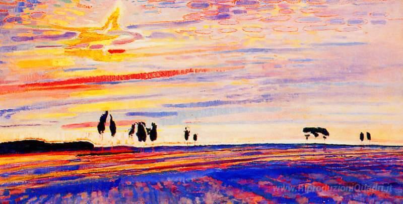 Scopri l'incanto dell'opera Gloria mattutina, realizzata dal maestro olandese Jan Sluyters, un artista la cui visione unica trascende il tempo e lo spazio. Con uno stile che fonde impressionismo e simbolismo, Sluyters riesce a catturare l'essenza della luce e dell'atmosfera, trasportando lo spettatore in un mondo di emozioni profonde e riflessioni intime.