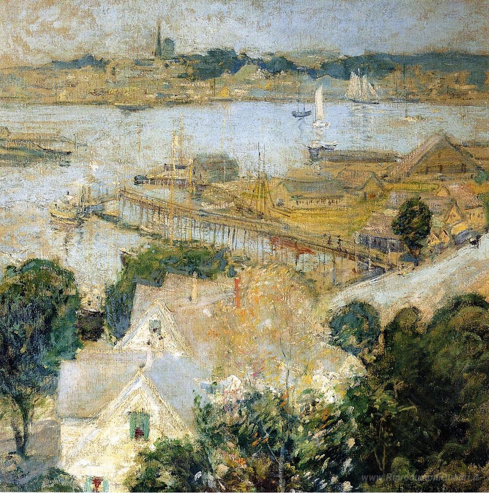 Ti offriamo una riproduzione artigianale su tela dell'opera famosa 'Gloucester Harbor' di John Henry Twachtman, dal Museo delle Riproduzioni.