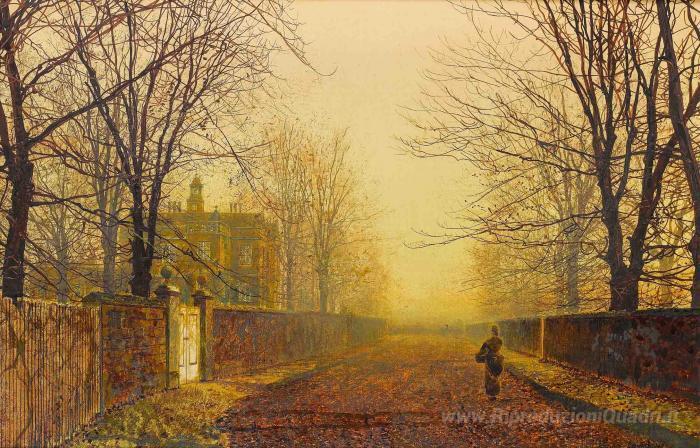 Ti offriamo una riproduzione artigianale su tela dell'opera famosa 'Golden Autumn' di John Atkinson Grimshaw, dal Museo delle Riproduzioni.