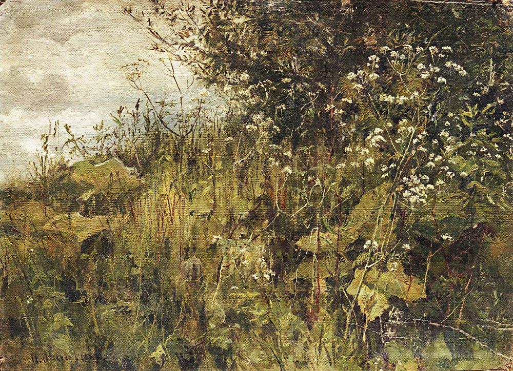 Ti offriamo una riproduzione artigianale su tela dell'opera famosa 'Goutweed-erba' di Ivan Shishkin, dal Museo delle Riproduzioni.