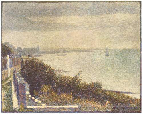 Scoprite l'incanto del dipinto Grandcamp, sera di Georges Seurat, una delle opere più emblematiche dell'arte neo-impressionista. Seurat, maestro della tecnica del puntinismo, utilizza piccoli tocchi di colore per creare una composizione luminosa e vibrante, trasmettendo la quiete di una serata estiva sulla costa francese. Il suo approccio scientifico alla teoria del colore assicura che ogni sfumatura giochi un ruolo fondamentale nell'emozione finale del dipinto.