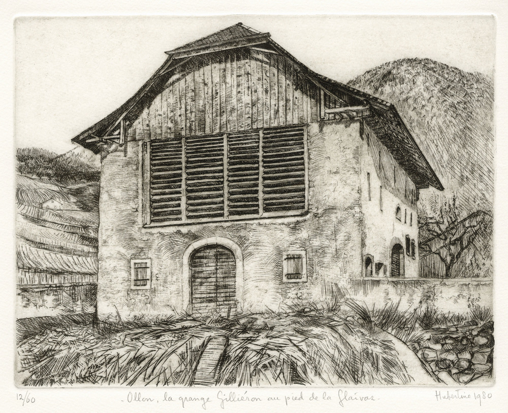 Ti offriamo una riproduzione artigianale su tela dell'opera famosa 'Grande granaio in pietra a Comune Ollon-ai piedi della montagna ' di Hubertine Heijermans, dal Museo delle Riproduzioni.