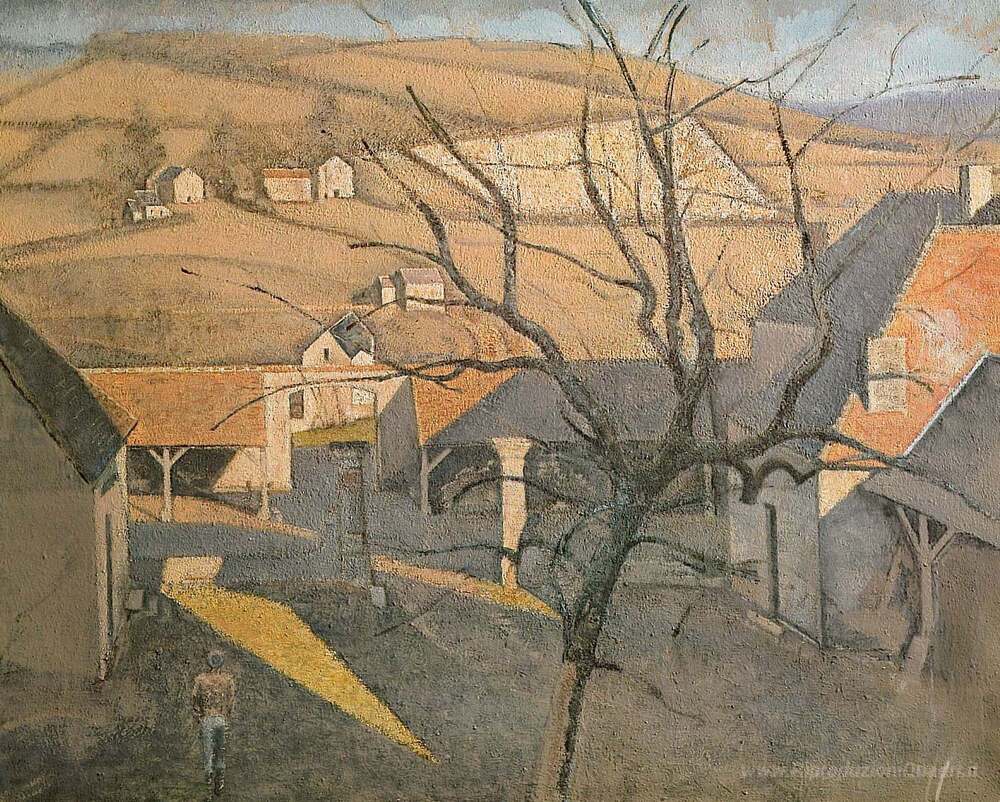 Ti offriamo una riproduzione artigianale su tela dell'opera famosa 'Grande Paesaggio con un albero' di Balthus, dal Museo delle Riproduzioni.
