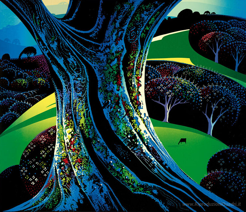 Ti offriamo una riproduzione artigianale su tela dell'opera famosa 'Grande Quercia' di Eyvind Earle, dal Museo delle Riproduzioni.
