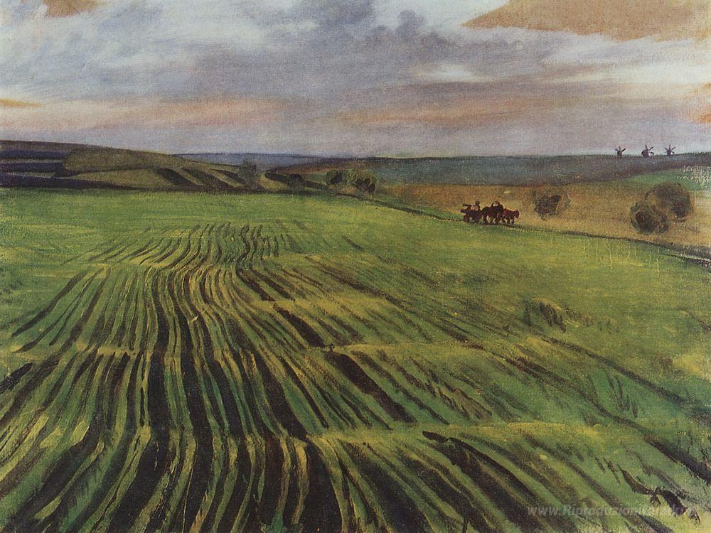 Ti offriamo una riproduzione artigianale su tela dell'opera famosa 'Grano invernale' di Zinaida Serebriakova, dal Museo delle Riproduzioni.