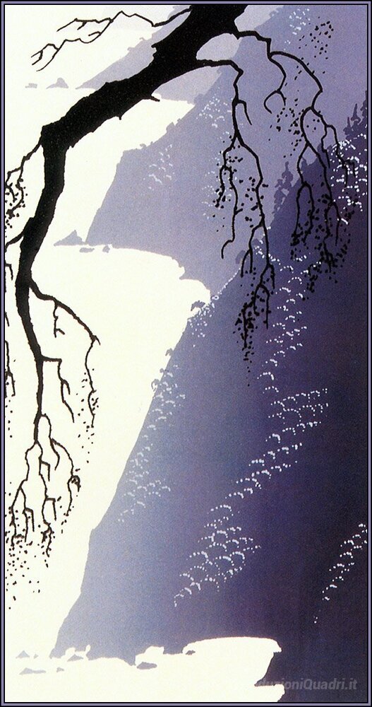 Ti offriamo una riproduzione artigianale su tela dell'opera famosa 'Grigio Mist' di Eyvind Earle, dal Museo delle Riproduzioni.