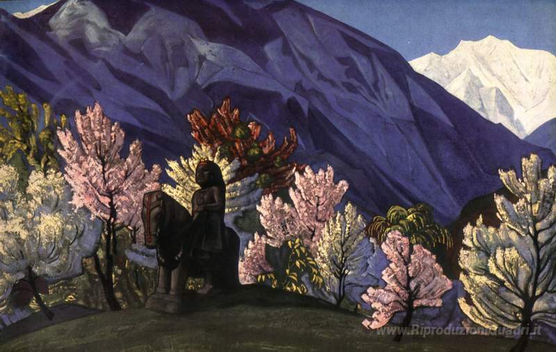 Ti offriamo una riproduzione artigianale su tela dell'opera famosa 'Guga Chohan. Kuluta.' di Nicholas Roerich, dal Museo delle Riproduzioni.