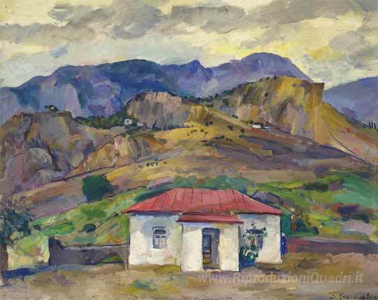 Ti offriamo una riproduzione artigianale su tela dell'opera famosa 'Gurzuf. Paesaggio di montagna.' di Pyotr Konchalovsky, dal Museo delle Riproduzioni.
