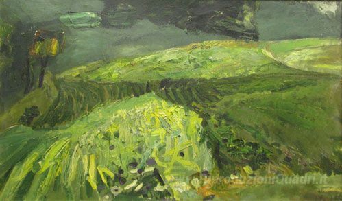 Ti offriamo una riproduzione artigianale su tela dell'opera famosa 'Hills' di Horia Bernea, dal Museo delle Riproduzioni.