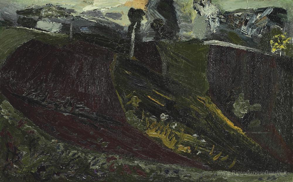 Ti offriamo una riproduzione artigianale su tela dell'opera famosa 'Hills' di Horia Bernea, dal Museo delle Riproduzioni.