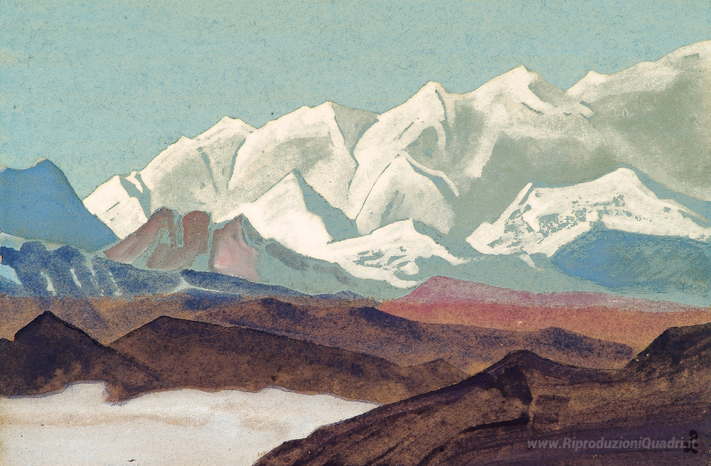 Ti offriamo una riproduzione artigianale su tela dell'opera famosa 'Himalaya. Catena di Kanchenjunga.' di Nicholas Roerich, dal Museo delle Riproduzioni.