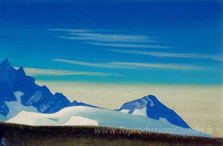 Ti offriamo una riproduzione artigianale su tela dell'opera famosa 'Himalaya. Mattina.' di Nicholas Roerich, dal Museo delle Riproduzioni.