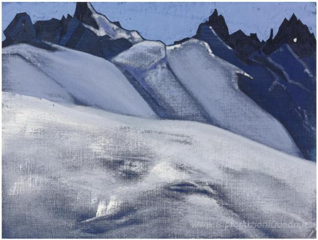 Ti offriamo una riproduzione artigianale su tela dell'opera famosa 'Himalaya' di Nicholas Roerich, dal Museo delle Riproduzioni.